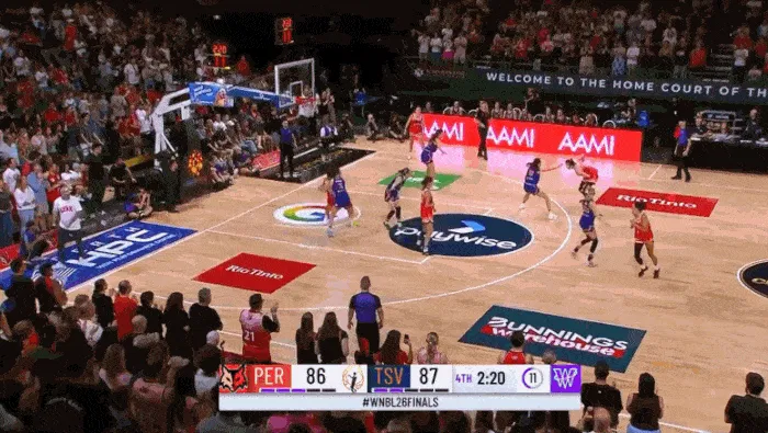 韩旭在篮下的二次进攻。(韩旭在WNBL联赛有明显的身高优势)